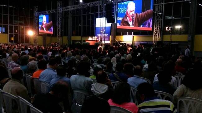 Los cinco mil asistentes al Pabellón Amarillo de Plaza Mayor y otros tres mil que lo hicieron afuera vibraron y escucharon atentamente con la conferencia a través de pantallas gigantes.