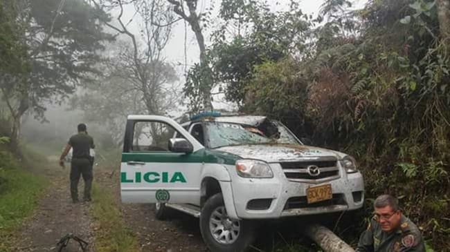 El atentado ocurrió entre las 10: 30 y las 11 de la mañana en la vereda San Isidro, jurisdicción del municipio de Quebradanegra. Según información entregada por fuentes de la Policía y de la Gobernación del departamento, dos uniformados tras recibir una llamada fueron a verificar una detonación de un artefacto de bajo poder contra una torre de energía pero fueron interceptados y atacados.