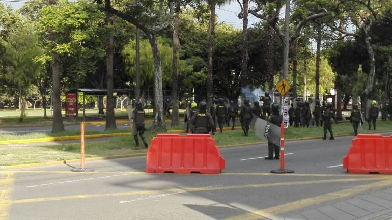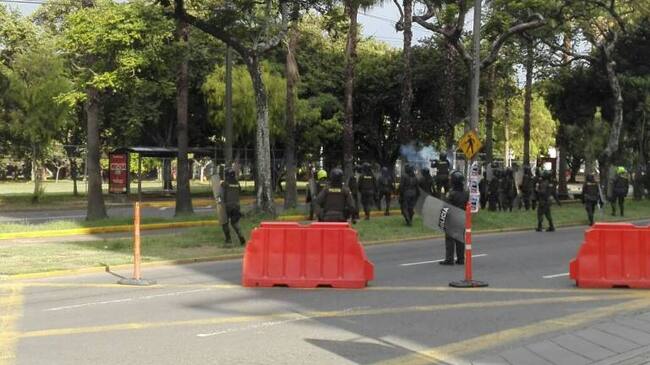 Durante más de dos horas fue interrumpido el tránsito vehicular por la avenida Pasoancho luego de los disturbios protagonizados por estudiantes de la Universidad del Valle y que dejó 4 uniformados lesionados.