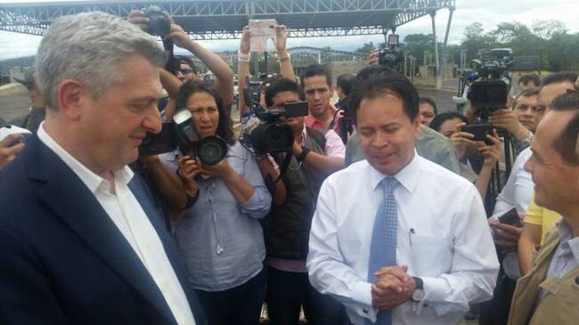 Los funcionarios colombo venezolanos recorrieron la obra acompañados del Alto Comisionado de la ONU para los Refugiados Filippo Grandi quien destacó los acercamientos entre los dos Gobiernos.