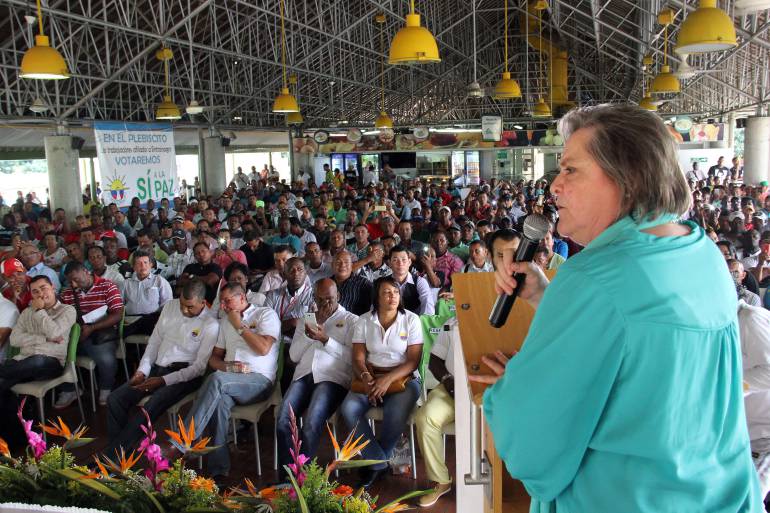 Durante la visita a Antioquia, la ministra de trabajo se reunión también los alcaldes de los 10 municipios de Urabá, allí los mandatarios locales manifestaron el respaldo al sí en la refrendación de los acuerdos de paz con las Farc.