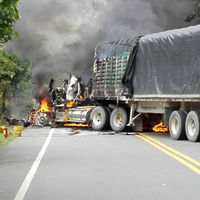 En dos hechos similares ocurridos en los municipios de Apartadó y Mutatá fueron incinerados dos vehículos repartidores de gaseosas y cervezas, esto en la subregión de Urabá en Antioquia.