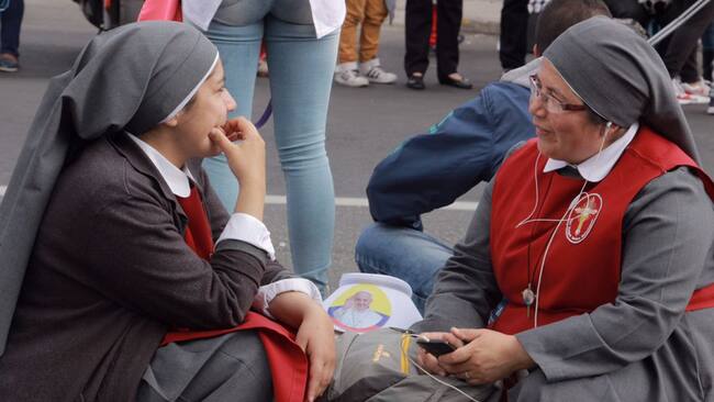 Foto 1 de 29Personas de la comunidad religiosa se reunieron en Teusaquillo para esperar al papa Francisco
