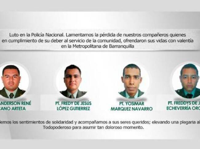 Se conocen los nombres de los cuatro patrulleros que perdieron la vida por el explosivo al sur de Barranquilla.