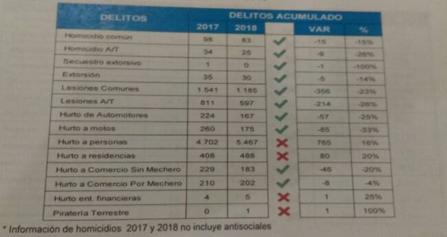 Delitos de mayor impacto aumentaron en Enero de 2018 frente a 2017