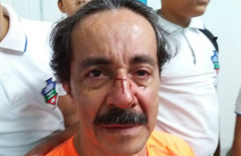 Cuando salía de esa oficina, esta persona me propina un puño en la cara y cuando caí al suelo me agarró a puntapiés", reiteró el educador.