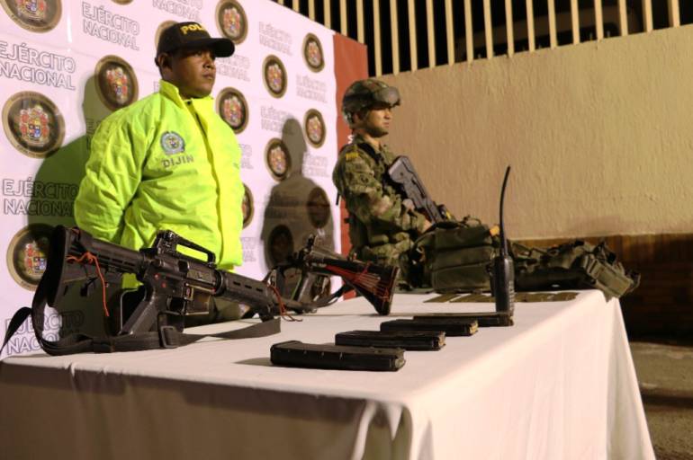El occiso tenía en su poder un fusil de largo alcance, un radio de comunicaciones y un chaleco multipropósito. En el lugar también fueron hallados otro fusil calibre 5,56 con tres proveedores y 126 cartuchos del mismo calibre, 5 barras de indugel, un radio de comunicaciones, un chaleco multipropósito, 1 granada de fragmentación y 1,3 toneladas de víveres.