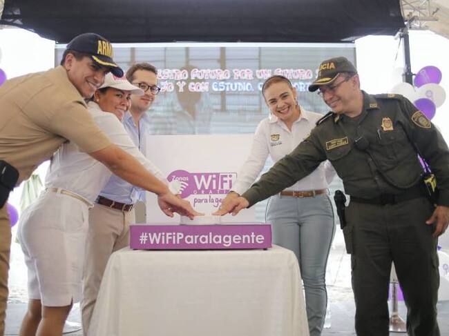 El ministro (e) de las TIC’s, Juan Sebastián Rozo, junto con Yolanda Wong, alcaldesa (e) de Cartagena y miembros de la Policía y Armada Nacional, entregaron 5 nuevas zonas de Wi-Fi gratis que funcionarán en las playas de Bocagrande