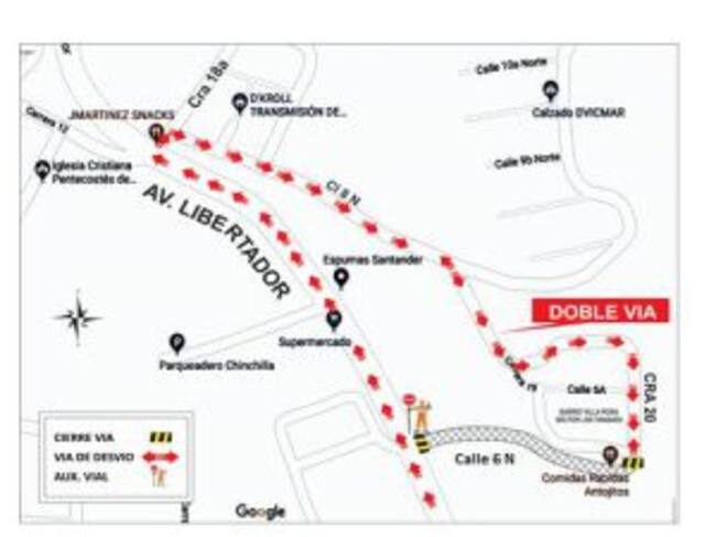 Ismocol, la empresa que construye el portal del Norte del sistema Metrolínea informó sobre el cierre de la calle 6N, desde la vía al mar hasta la carrera 20 del barrio Villa Rosa - sector los Tanques y viceversa.