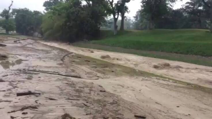 La cancha de golf terminó inundada de lodo.