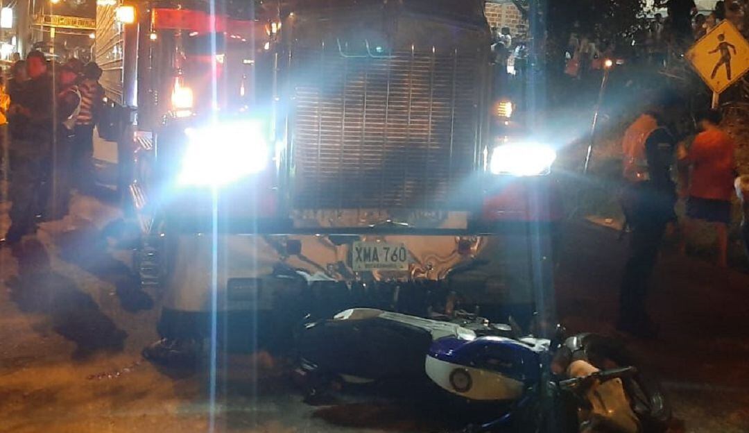 Esta maniobra la motocicleta colisionó contra las llantas del vehículo pesado. Producto del choque las dos personas fallecieron en el lugar de los hechos.