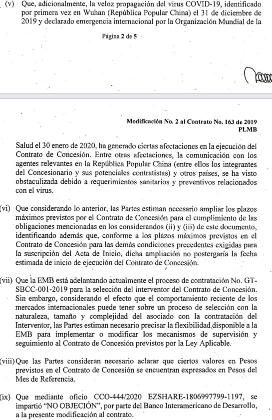 Se modificaron algunos plazos por cuenta de las dificultades que vive China y sus empresas por cuenta de la pandemia.