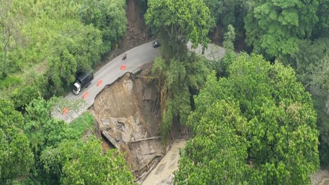 El tramo nacional presenta graves derrumbes por lluvias que no cesan en Santander.