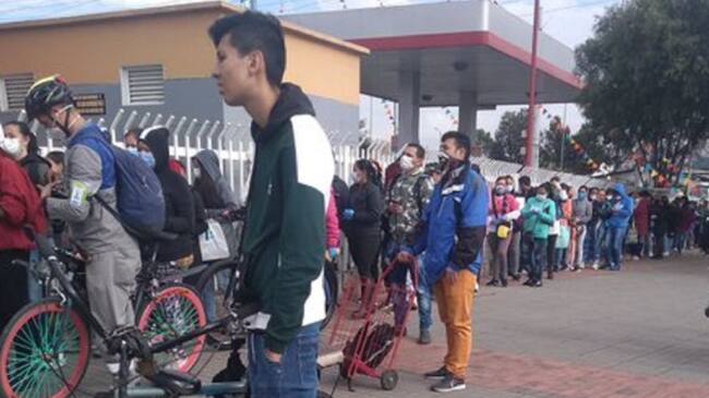 Interminables filas para recibir refrigerios de niños por Covid-19