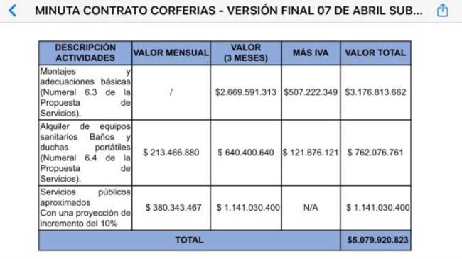 López afirmó que en primera instancia las directivas del centro de eventos pidieron 11.000 millones de pesos por la utilización de las instalaciones de Corferias, pero la Alcaldía se negó y afirmó que solo pagaría la adecuación del lugar para las habitaciones, servicios sanitarios y públicos.