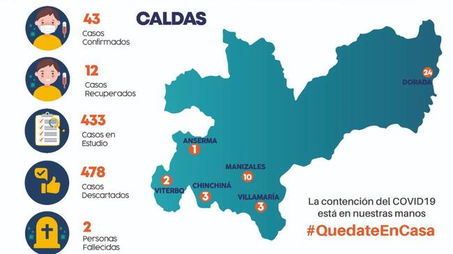Dentro de estos últimos registros se identifica también el caso positivo en Manizales de un hombre de 57 años, quien permanece con cuidados en casa. Con lo que Caldas llega a 43 personas contagiadas por COVID-19.