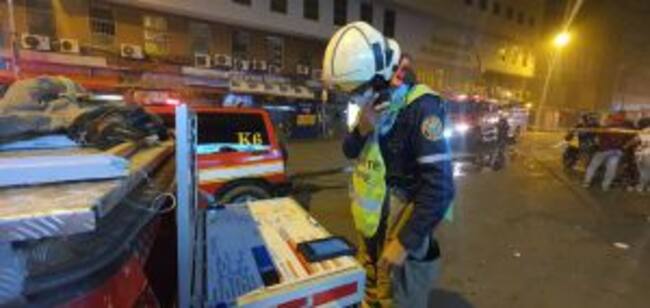 “Nos reportan incendio en el sótano de esta edificación sólida de seis pisos, de más de 150 almacenes en el lugar, se trabaja con 4 bombas extintoras, un carro tanque, una máquina de altura, dos carros de comando, un carro logístico y una ambulancia en el lugar, con más de 35 unidades bombariles”, dijo el Cabo Marco Gómez del cuerpo de bomberos de Cali.