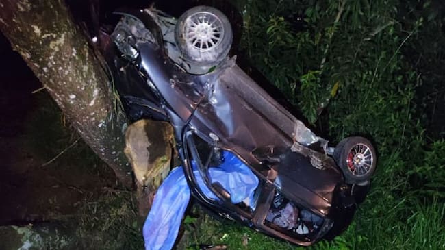 Los hechos se presentaron a la altura del kilómetro 11, en el sector de El Cofre, donde un vehículo de servicio particular se salió de la carretera y sufrió un violento choque y volcamiento.
