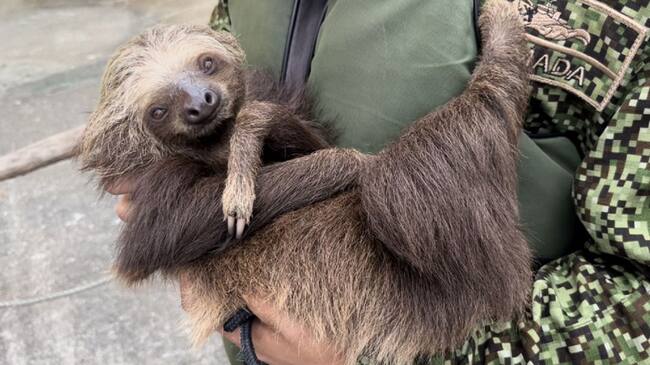 Los mamíferos, de dos dedos, fueron rescatados en un operativo realizado por unidades de la Armada, en la zona del río San Juan, Bajo Calima.