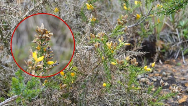 Se trata de la planta retamo espinoso, proveniente del occidente de Europa y representa un peligro para la fauna y flora del ecosistema nativo.