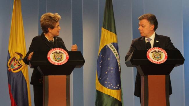 El presidente Juan Manuel Santos al término de la reunión con su homóloga de Brasil, Dilma Russeff, agradeció el buen estado de las relaciones bilaterales así como anunció varios acuerdos de cooperación binacional en diferentes sectores.