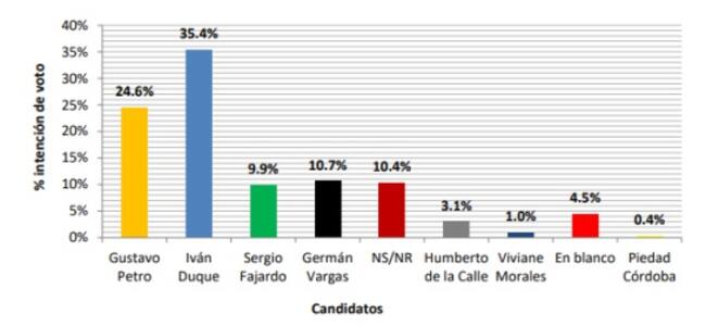 A su vez, la  encuesta adelantada por la firma Yanhaas ,se aproximó al porcentaje final que obtuvo el candidato Iván Duque.