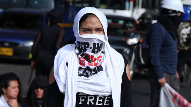 Foto 21 de 30Con mascaras y fuertes mensajes manifestantes muestran su inconformidad con el Gobierno