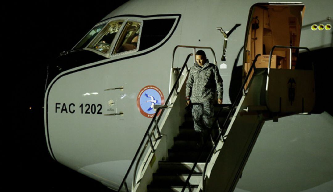 El avión de la FAC aterrizó en CATAM. Iniciarán su aislamiento en la Villa Olímpica de Coldeportes.
