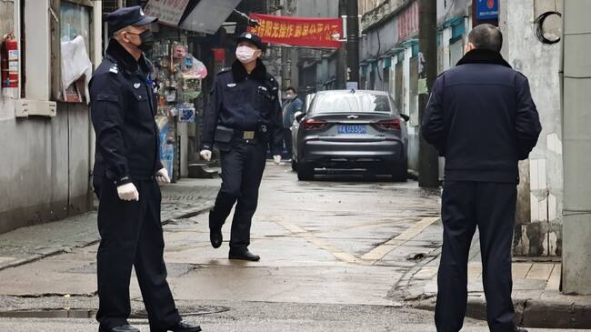 Policía china recorriendo las calles de Wuhan. (Getty Images)