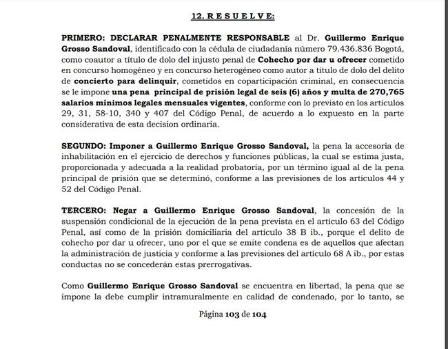El juez 25 de Conocimiento de Bogotá condenó a seis años de prisión al expresidente de la extinta Cafesalud Guillermo Grosso. También le impuso una multa de 270.765 SMLMV y ordenó al CTI de la Fiscalía capturarlo.