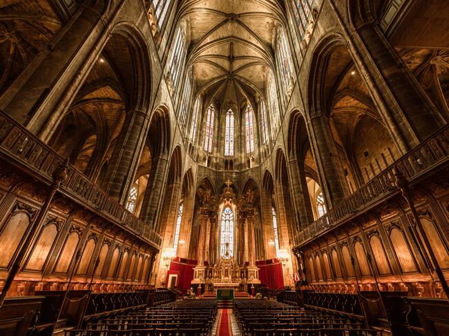 Narbonne, France, August 4, 2021. Interior view of the central nave in Narbonne Cathedral. / Sergio Formoso