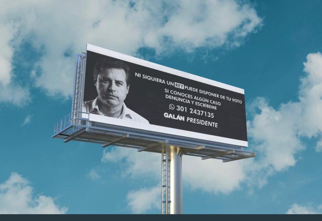 “Ningún Rey nos da órdenes, ni nos apoya”, dice Carlos Fernando Galán. Su hermano, el precandidato presidencial Juan Manuel Galán, mandó hacer una valla que dice: “Ni siquiera un Rey puede disponer de tu voto”, dentro de una campaña para denunciar el accionar de los clanes políticos.