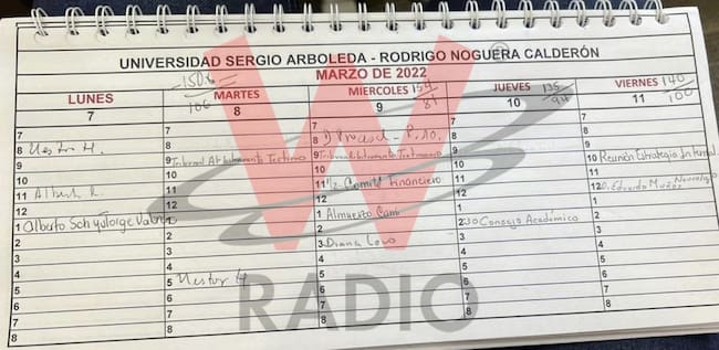 Hay una prueba que puede refrescar la frágil memoria del rector, se trata de su agenda de hace dos semanas. En su propia letra están marcadas dos citas para el lunes 7 de marzo: a las 8 de la mañana “Néstor H” y a las 11 “Alberto R”.