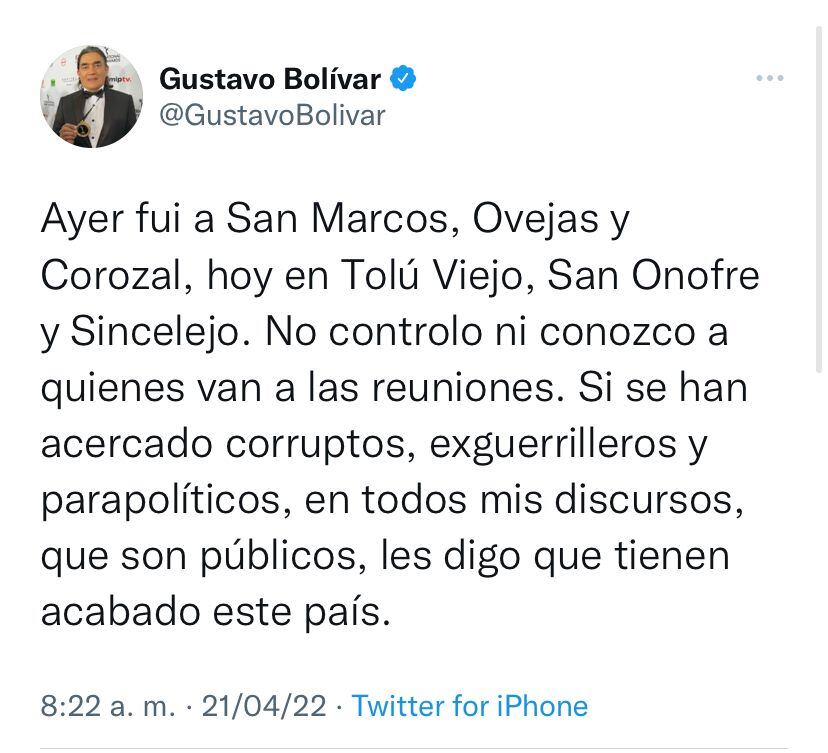 En el ojo del huracán de las redes sociales se encuentra el senador Gustavo Bolívar, a quien lo están criticando porque el senador estuvo en Ovejas, Sucre, en un evento público en el que estuvo el político Álvaro Gonzáles, quien es cuestionado por pertenecer a la casa del ‘Gordo García’. Así respondió el senador Bolívar: