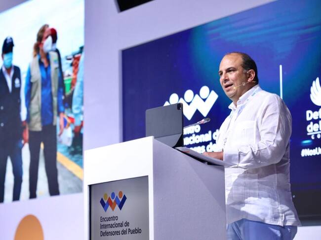20-10-2021. En el marco de la inauguración del Encuentro Internacional de Defensores del Pueblo, Carlos Camargo defensor del Pueblo de Colombia, enfatizó en que se deben establecer mecanismos de cooperación para hacer un frente común ante las políticas contra los migrantes. Foto: Colprensa.