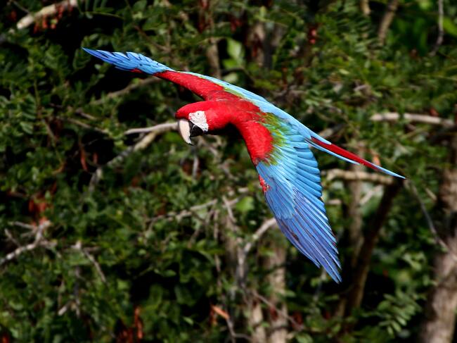 South American Red-and-green Macaw (Ara chloropterus) flying past at close range. (A.k.a Green-winged Macaw.) / Picasa