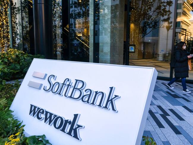 Entrance signage outside the building where the SoftBank Group headquarters is located is seen in Tokyo on February 8, 2022. (Photo by Kazuhiro NOGI / AFP) (Photo by KAZUHIRO NOGI/AFP via Getty Images) / KAZUHIRO NOGI