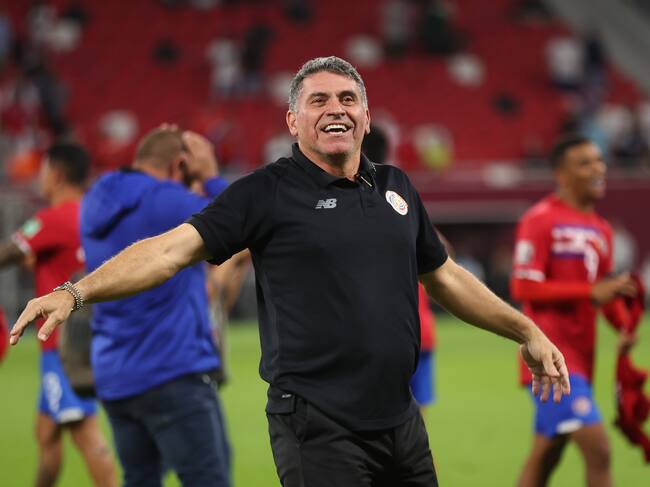 DOHA, QATAR - JUNE 14: Luis Fernando Suarez the head coach / manager of Costa Rica celebrates victory after the 2022 FIFA World Cup Playoff match between Costa Rica and New Zealand at Ahmad Bin Ali Stadium on June 14, 2022 in Doha, Qatar. (Photo by Matthew Ashton - AMA/Getty Images) / Matthew Ashton - AMA