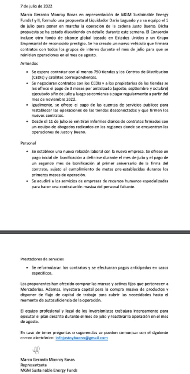 Entre tanto, hay más de 100 arrendatarios que rechazan propuesta de firma internacional para salvar Justo & Bueno y piden que los devuelvan los locales.