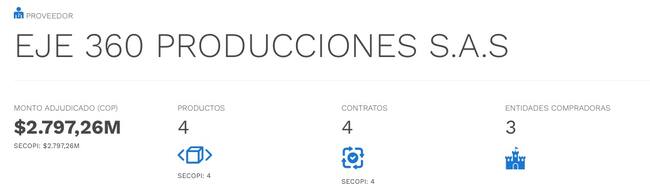 Fuentes le confirmaron a este medio que a través de esa relación Laverde-Castaño, Eje 360, una pequeña productora del Eje Cafetero obtuvo millonarios contratos con, por ejemplo, el Ministerio de las TIC, a través de convocatorias.