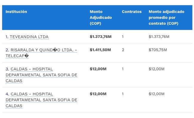 También se puede observar cómo se incrementó la contratación de Telecafé desde la llegada a la gerencia del canal de Sandra Aristizábal (fórmula a la Cámara de Mario Castaño) en enero de 2020: en 2019 los contratos de Telecafé sumaron 4769 millones de pesos, en 2020 la contratación ascendió a 12.777 millones de pesos y en 2021 68.283 millones de pesos.