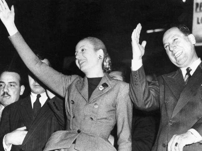 El presidente de Argentina, Juan Perón, y su esposa, Eva Perón, durante su campaña política el 28 de agosto de 1951. Foto: Bettmann / Getty Images / Bettmann