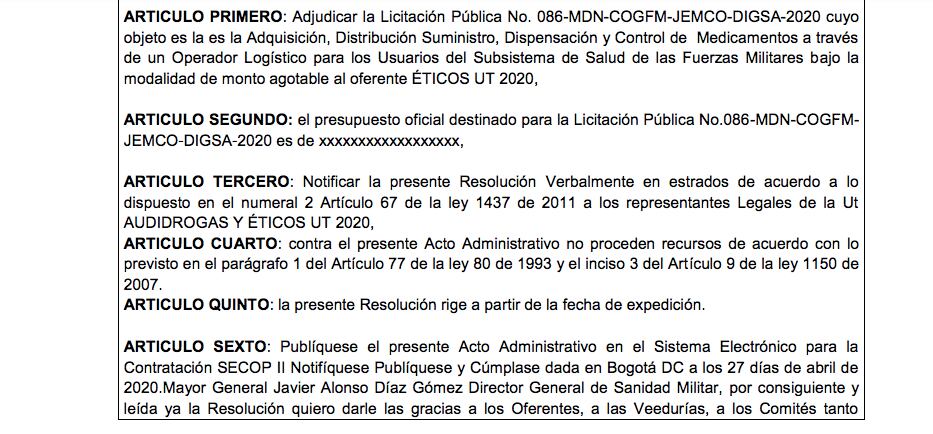 La pregunta es, ¿por qué para este año 2022 se cambió la modalidad de contratación? Ahora Colombia Compra Eficiente publicó un Acuerdo Marco en donde durante los próximos 3 años la Policía, el Ejército y los hospitales públicos solo le podrán comprar medicamentos a 3 proveedores entre ellos a Éticos Serrano Gómez Ltda, Unión Temporal Audidrogas y Productos Hospitalarios S.A.