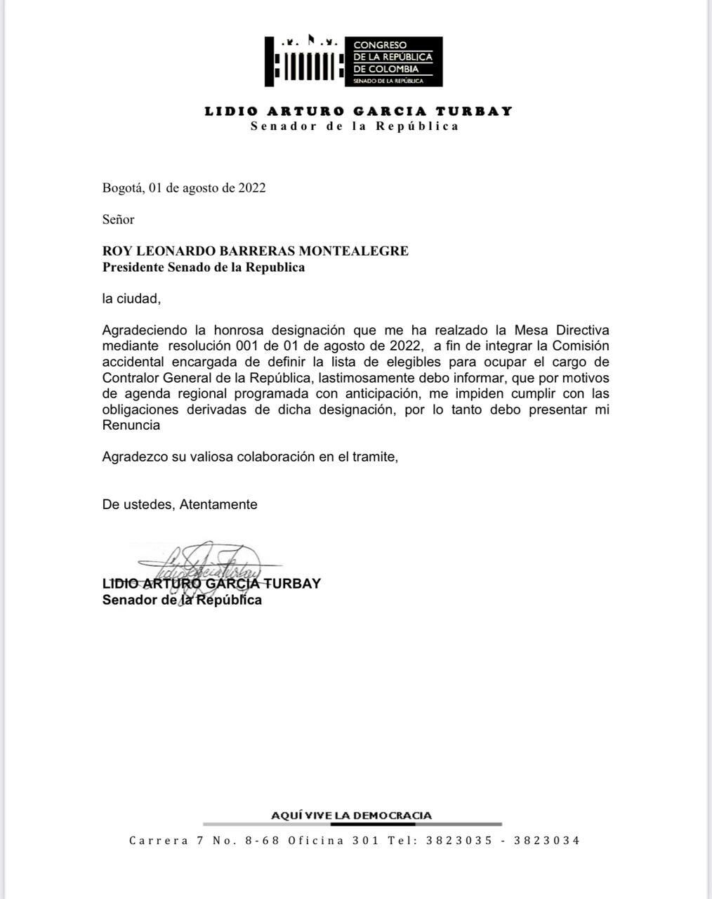 El senador Lidio García señaló que compromisos relacionados con su agenda le impiden participar en el proceso. Sin embargo, fuentes del Partido Liberal manifestaron que hay preocupación por el sustento jurídico que llevó a la decisión de volver a elaborar la lista de 10 elegibles.