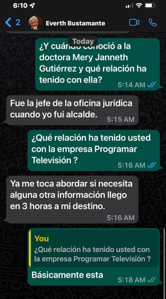 El nombre de Everth Bustamante ha sido mencionado desde hace años con relación a Programar Televisión. Hoy, a las 4:11 de la mañana, hora de Colombia, pude sostener una conversación de WhatsApp con el exsenador Bustamante, quien fue alcalde de Zipaquirá entre 2001 y 2003. Me dijo que estaba en un aeropuerto y la llamada telefónica no entraba.