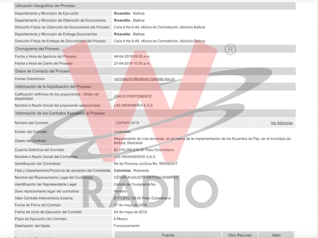 El municipio de Balboa recibió dinero para dos contratos, pero uno que llama la atención, es el que recibió $2.216 millones, en donde el accionista mayoritario del consorcio que hizo el negocio, y recibió el contrato es Las Ingenierías S.A.S, y su accionista mayoritario es Jhon Freddy Zapata Garzón, alias ‘Messi’, el empresario fachada de alias ´Otoniel´ condenado y en líos con la justicia norteamericana.