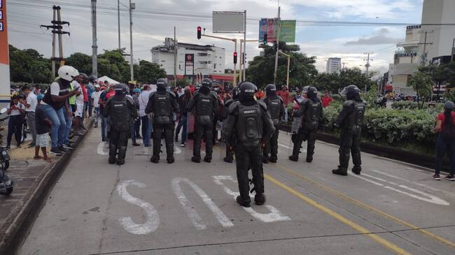 En el sector la movilidad se vio afectada en los empalmes con la Transversal 54, Troncal de Occidente, Av. Pedro de Heredia y Cordialidad; los manifestantes cumplieron la cita y permitieron pasos eventuales durante media hora.