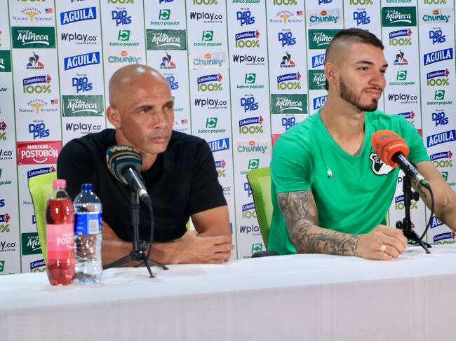 Mayer Candelo, durante una rueda de prensa como técnico del Cali / @asodeporcali.