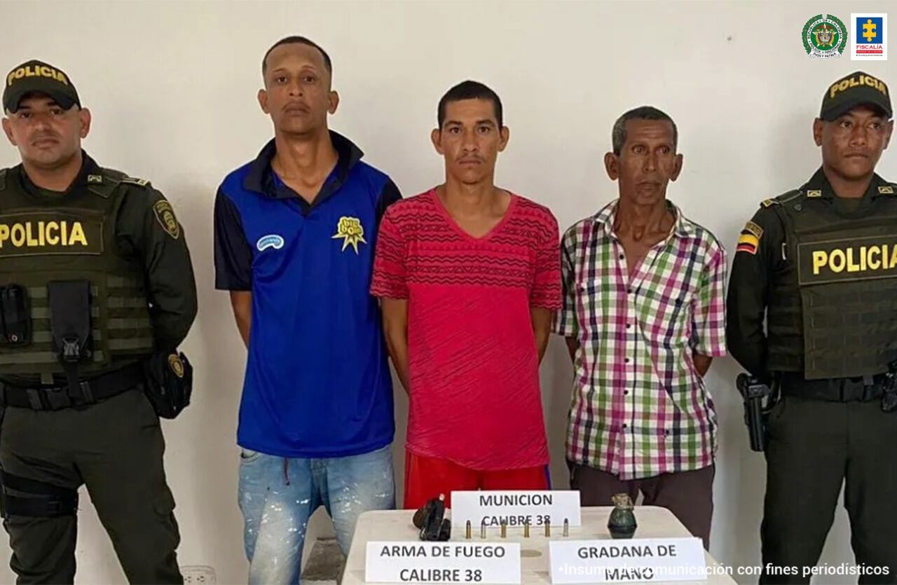 En desarrollo de acciones judiciales la Fuerza Pública detuvo momentos después a Ismael José Camargo Santa Cruz, de 36 años. En poder del hombre fue encontrada un arma de fuego calibre 32, seis cartuchos del mismo calibre, un radio de comunicaciones, una batería para el mismo; además de una granada de fragmentación, entre otros elementos.