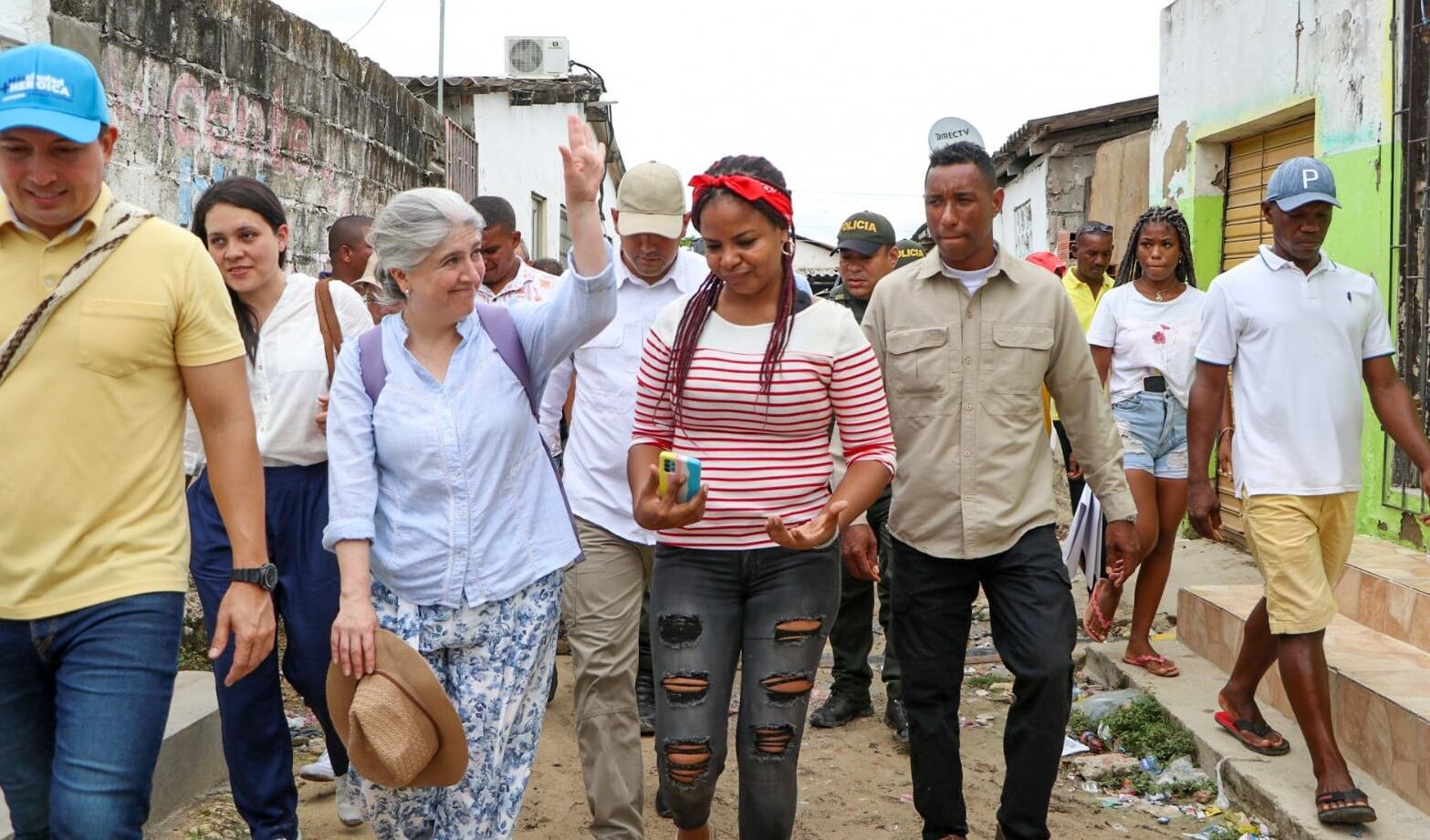 La visita de la alta funcionaria contó con el acompañamiento del secretario general de la Alcaldía, Carlos La Rota y el gerente general de Acuacar, Manuel Vicente Barrera, el superintendente de servicios públicos, Lorenzo Castillo y líderes de la comunidad.